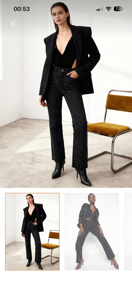 Pul işlemeli puantiyeli siyah denim kot, regular fit ve midi boyda. Ofis ve sokak stiline uygun modern tasarım. ✨ detaylı fotoğraf atarım isteyen olursa