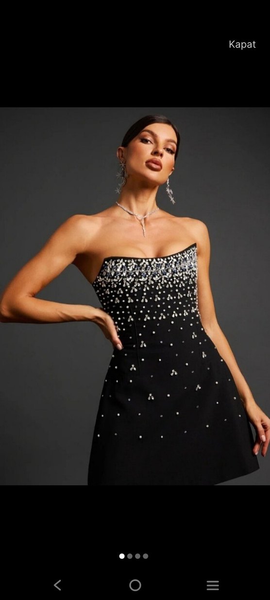Pul İşlemeli Siyah Mini Straplez Elbise