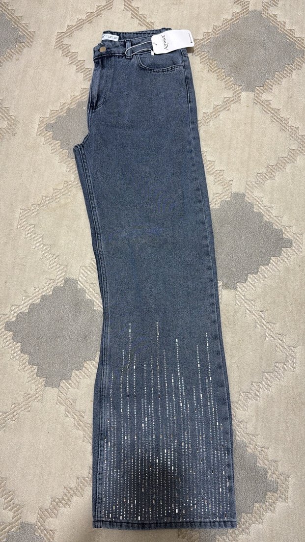 Pul İşlemeli Uzun Mavi Kot Pantolon