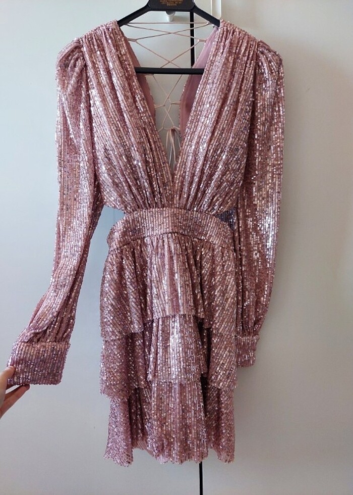 Pul payet pembe after elbisesi 36 beden