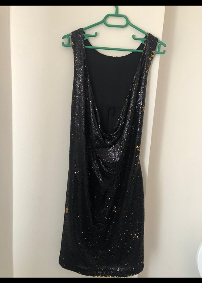Pul payet siyah Gold derin sırt dekolteli abiye elbise
