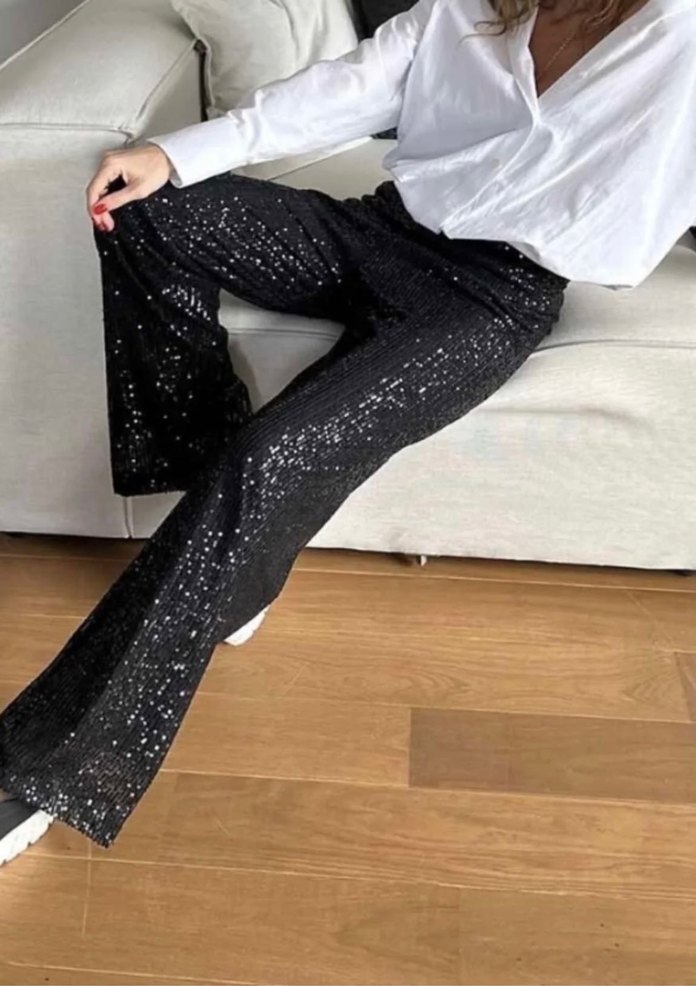 Pul Payetli Tasarım Pantolon Siyah