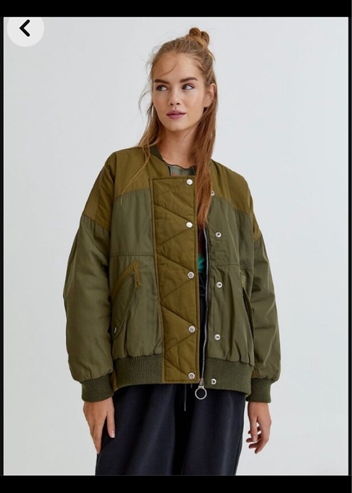 uzun süredir dolapta duruyor. pullandbear marka bomber ceket ama mont gibi soğuk geçirmez oversize her bedene uygun