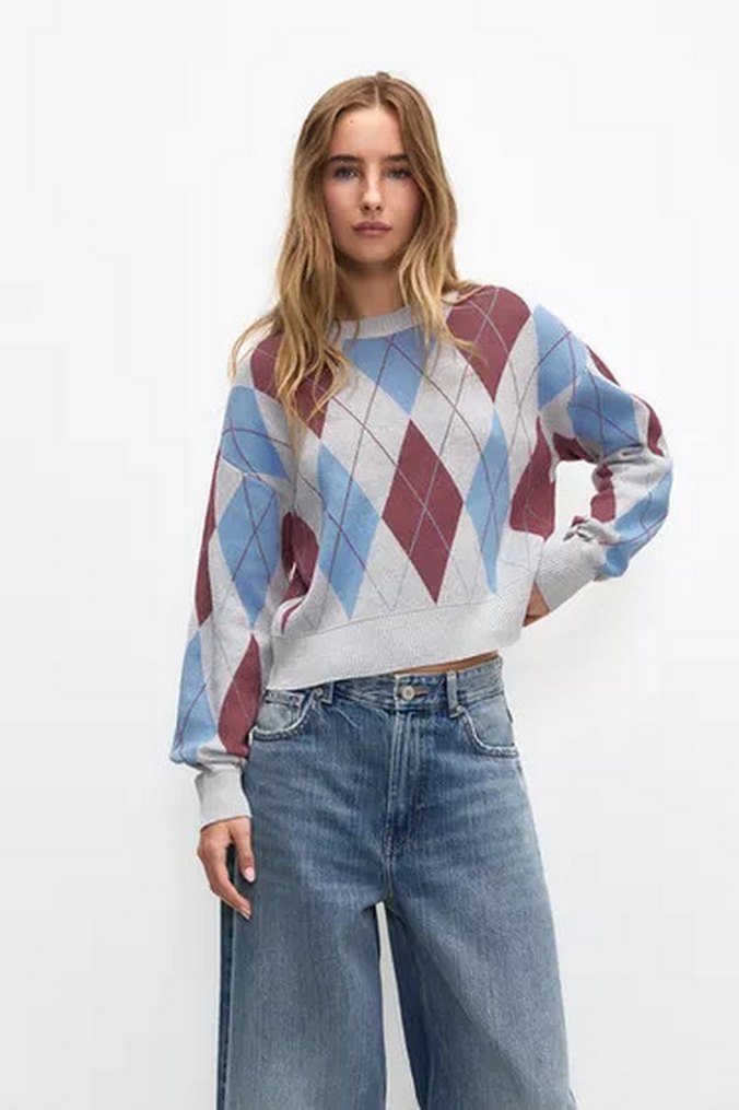 Pull and Bear Baklava Desen Triko Kazak
