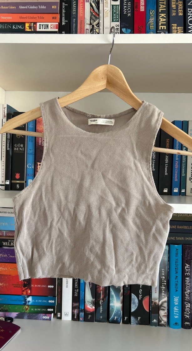Pull and bear Bej Keten Yüksek Yakalı Kadın Atlet
