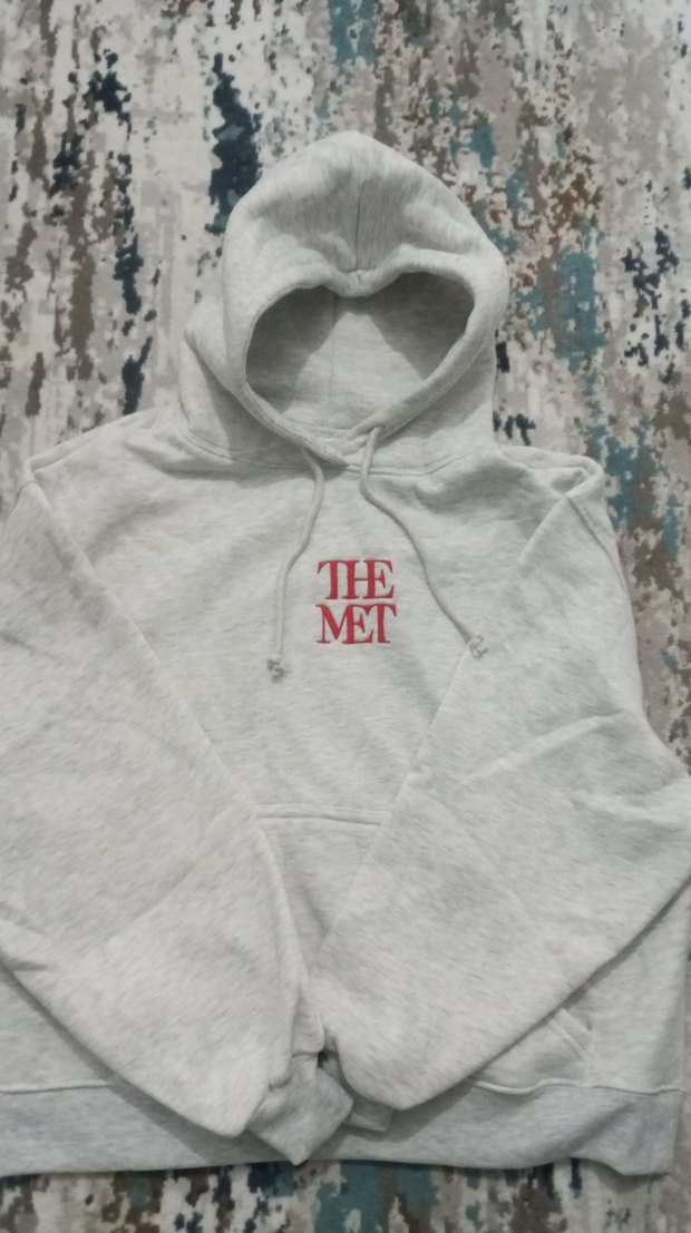 pull bear marka Nakışlı "THE MET" yazılı, uzun kollu, kapüşonlu gri sweatshirt. Rahat kesimli ve yumuşak örme kumaştan, günlük kullanım için uygun.
