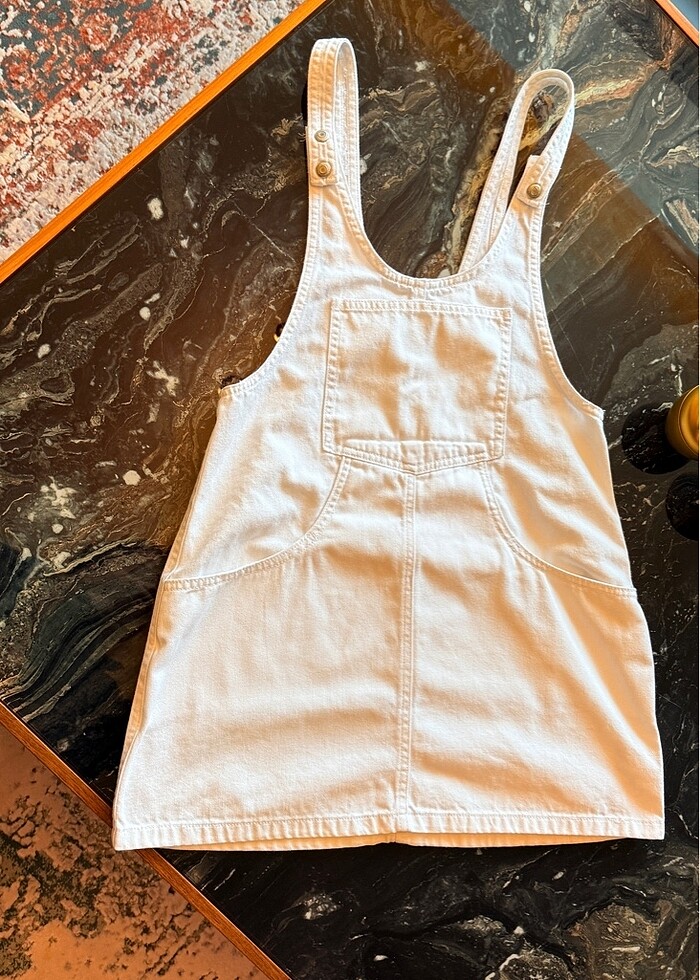 pull and bear beyaz kot salopet elbise