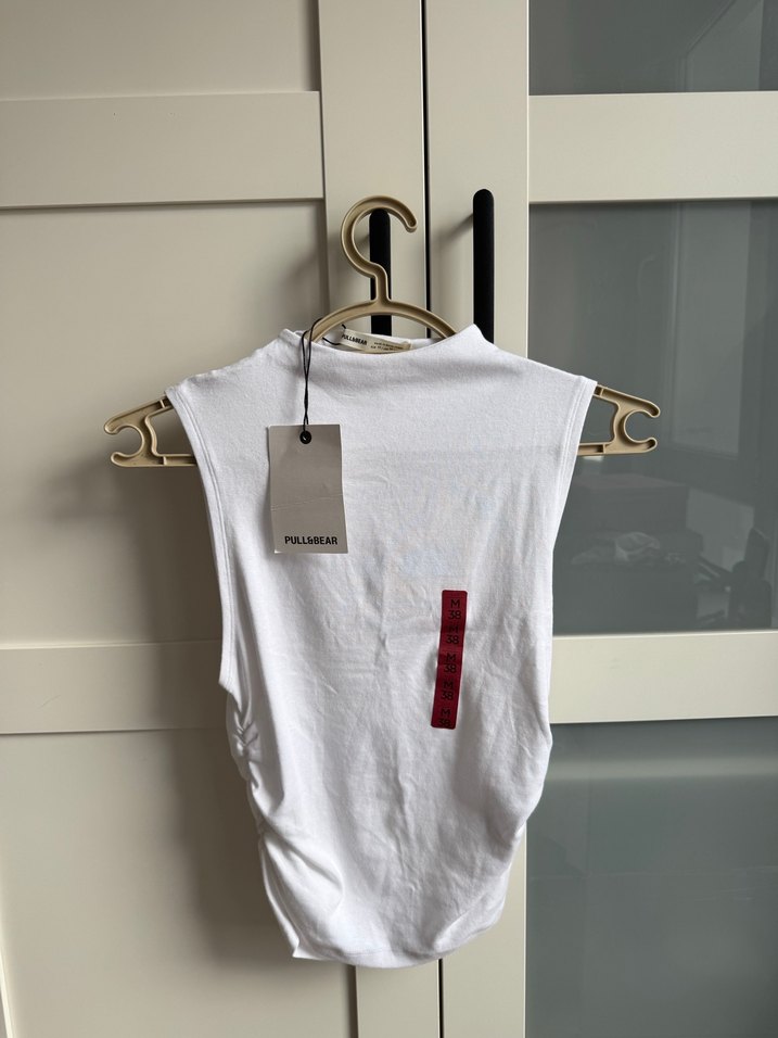 Pull and bear Beyaz Yüksek Yakalı Kadın Atlet - Görsel 1