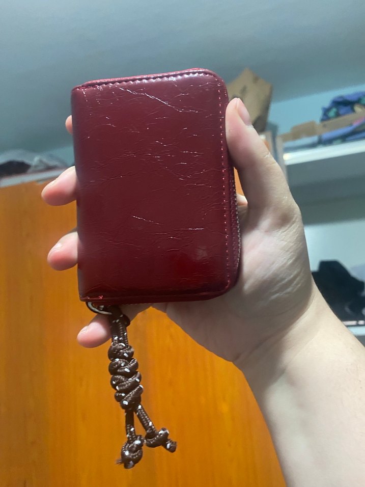 ürünün desini kırısık gibidir yeni modeli böyle herhangi bir kırık çatlama vs yoktur sku kontrol edebilirsinizBordo parlak deri kadın cüzdanı, yılan desenli ve fermuarlı. Günlük kullanım için uygun, Paris sokak modasına uyumlu.