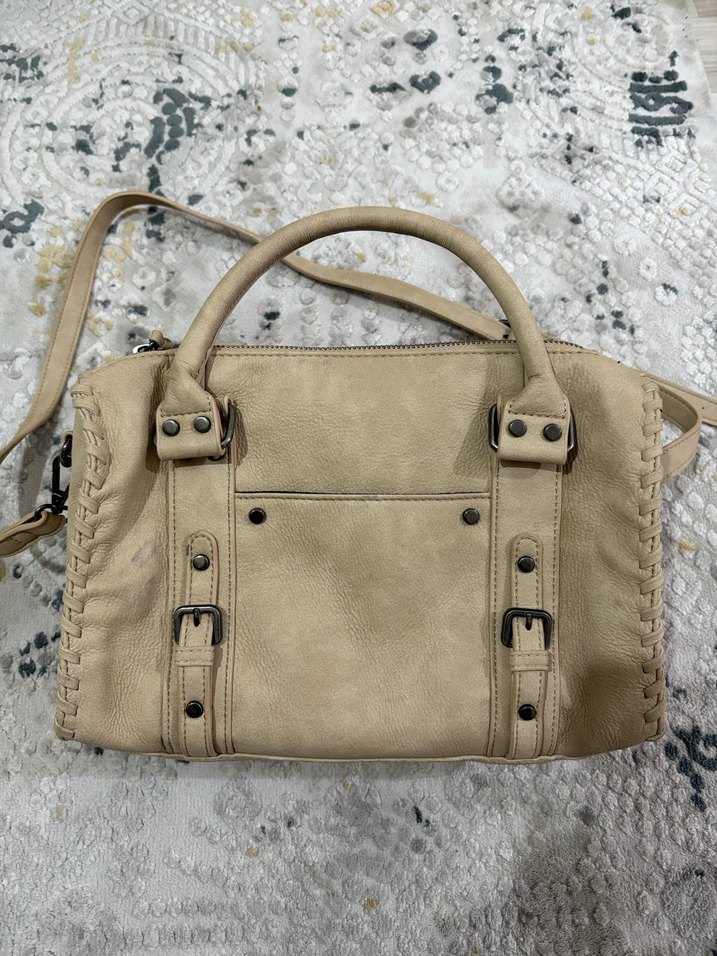 cok beğendiğim bir çantaydı ama benzer bir çanta aldığım için acil satıyorum belli belirsiz lekesi var ekledim. bej renkte deri