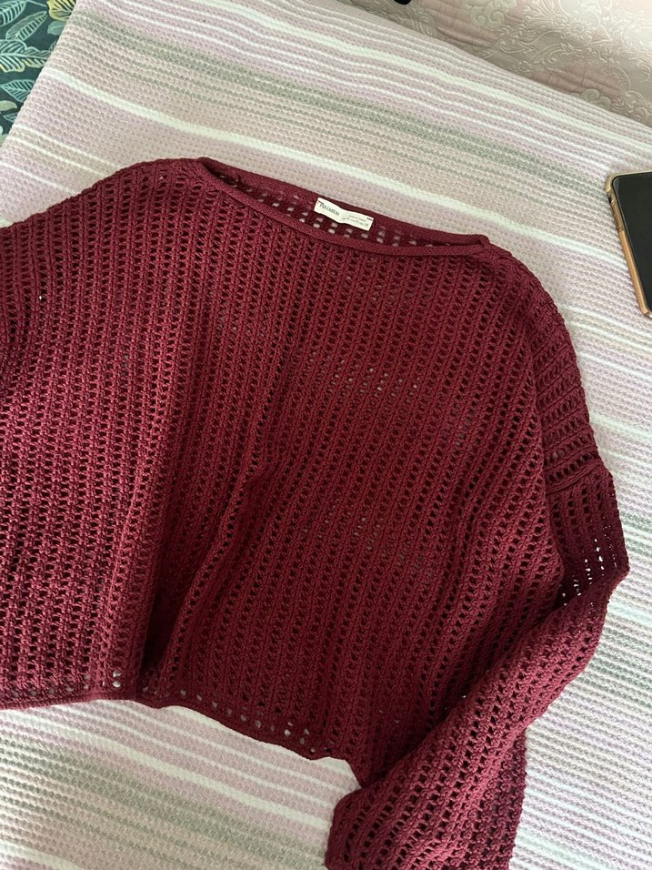 Pull and bear delikli bordo kazak