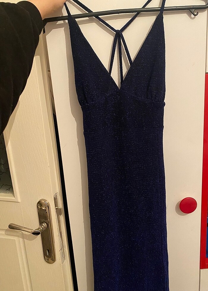 Sırt detaylı simli gece elbisesi aşırı güzel parlıyor midi boy hiç giymedim