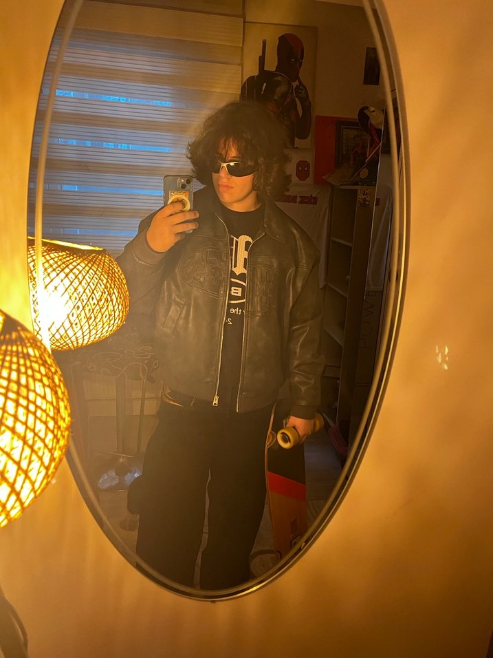 Gri deri erkek ceketi, notç yakalı ve fermuarlı ön cephelidir. Uzun kollu, bol kesim ve normal boydadır, günlük ve sokak stiline uygundur.