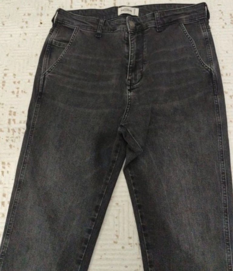 Gri renkte, normal boy ve regular fit kesime sahip kadın denim pantolon. Desensiz ve günlük kullanıma uygun, zahmetsiz şıklık sunar.