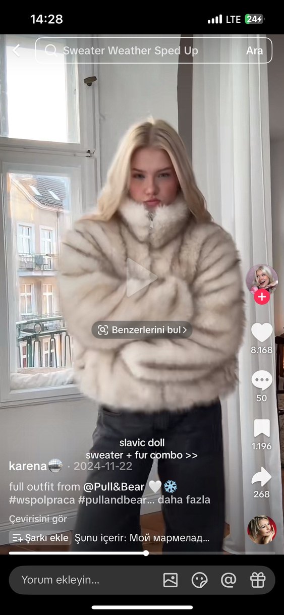 Pull And Bear Gri Yüksek Yakalı Kadın Suni Kürk Ceket