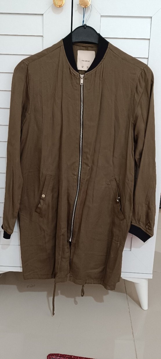 Pull and bear haki yeşil j Uzun Fermuarlı Kadın Ceket