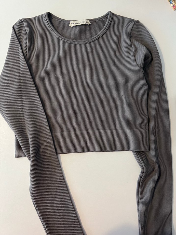 Pull and bear Kadın Gri Uzun Kollu Crop Top