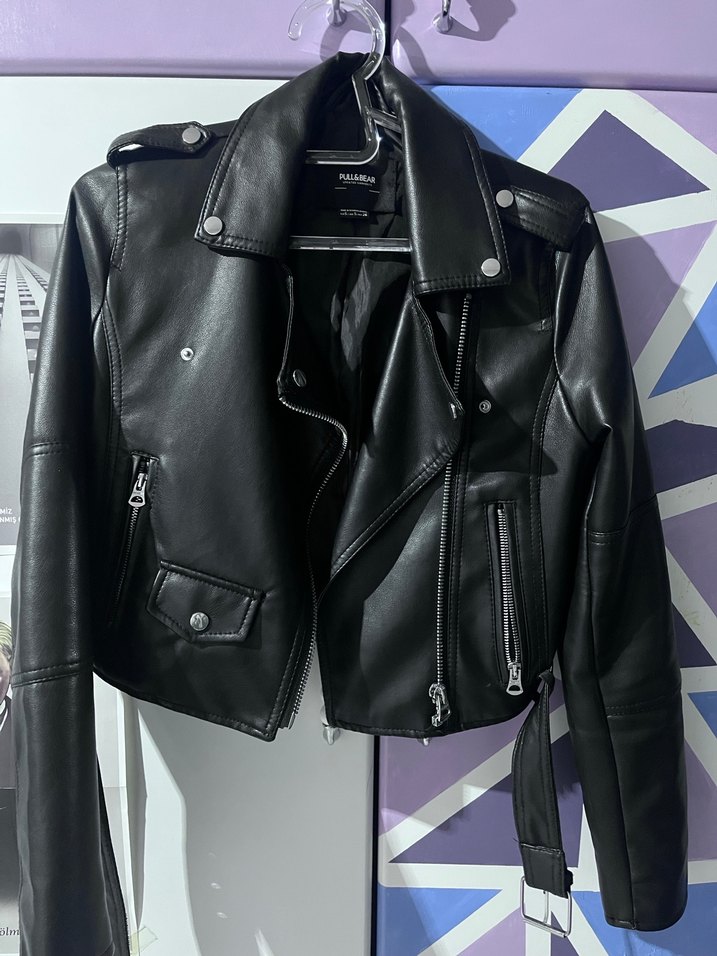 Pull and bear Kadın Siyah Deri Biker Ceket