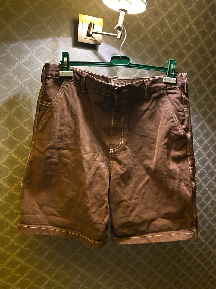 Pull And Bear Kahverengi kot , kemerli ve bol kesim erkek şort. Desensiz ve günlük rahat kullanıma uygun.