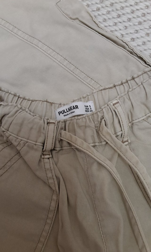 Bej renk, cepli kargo pantolon boyu 100cm bol eğer m giyiyosanız da olur sadwce bir kere giyildi her mevsim giyilir