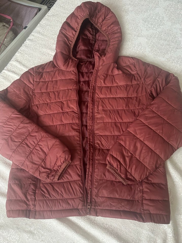 Pull and Bear Kiremit Rengi Kapüşonlu Fermuarlı Kadın Mont