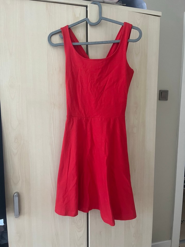 Pull and bear Kırmızı Kolsuz Midi Keten Elbise