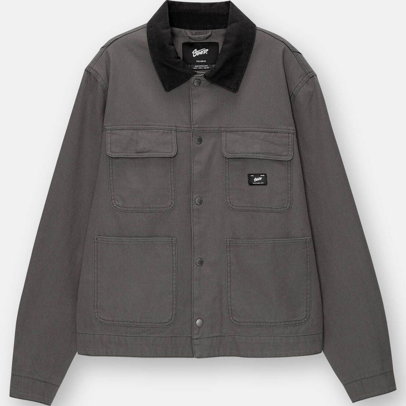 Gri düğmeli, yakalı ve uzun kollu street wear ceket. Orta boy, rahat kesim ve yumuşak, sıcak kumaştan üretilmiştir. Dört cepli, sade desensiz tasarım.