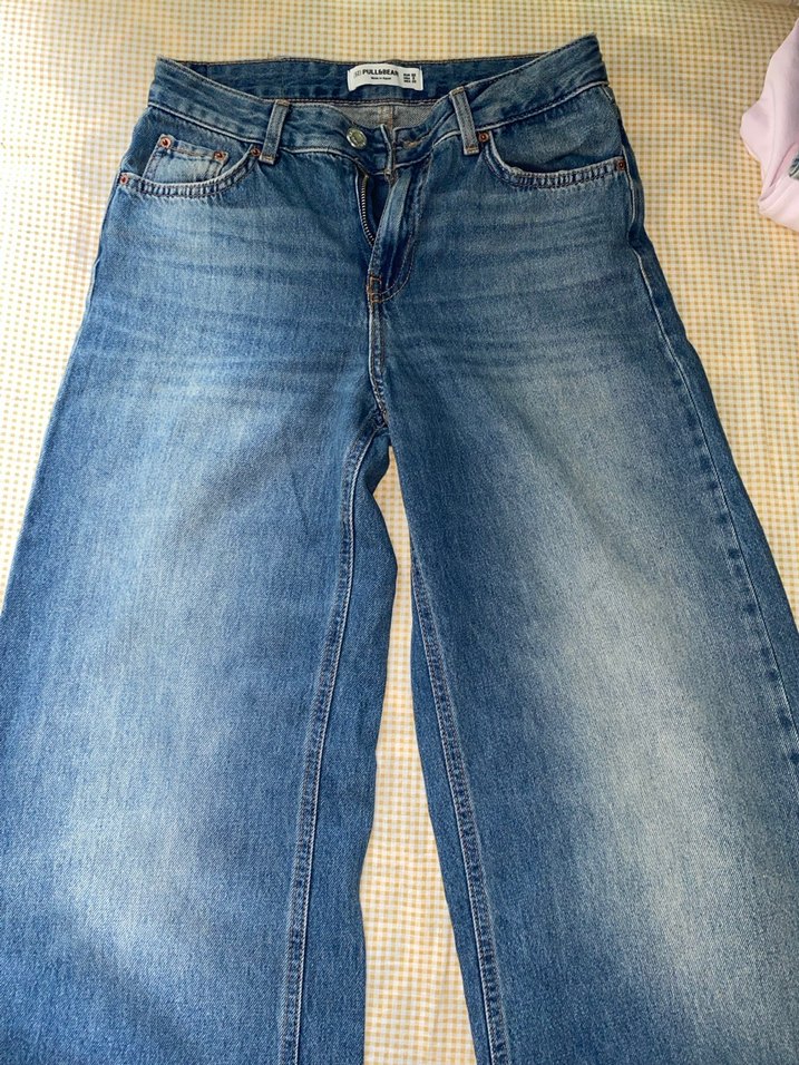 Gri mavi tonlarda, düğmeli önü ve normal midi boyu ile rahat loose fit kadın kot pantolon. Günlük kullanıma uygundur. Kalıp müthiş