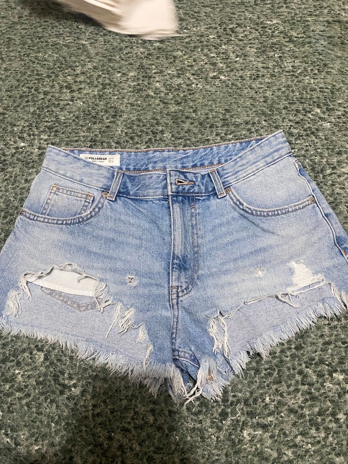 Pull and bear mavi yırtık denim şort