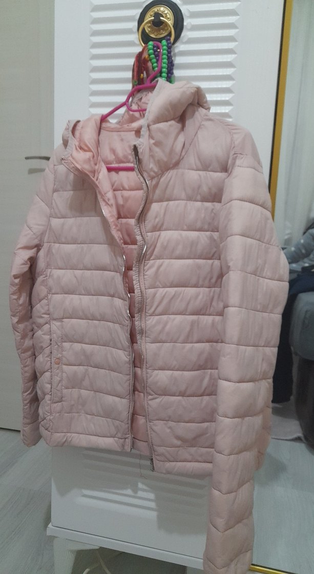 Pastel pembe renkli, fermuarlı, normal boyda ve uzun kollu, kadın kışlık mont. Notlu yaka ve rahat kesimiyle günlük kullanıma uygun, sentetik kumaştan üretilmiştir. ❄️ çok sıcak tutuyor severek kullandım bir kış ama artık kullanmıyorum
