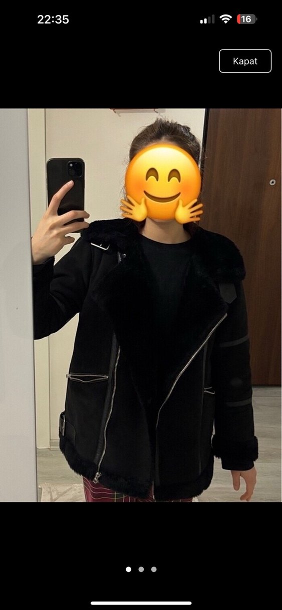 Fermuarlı, siyah, uzun kollu ceket , yumuşak ve sıcak tutar etiketi üzerinde