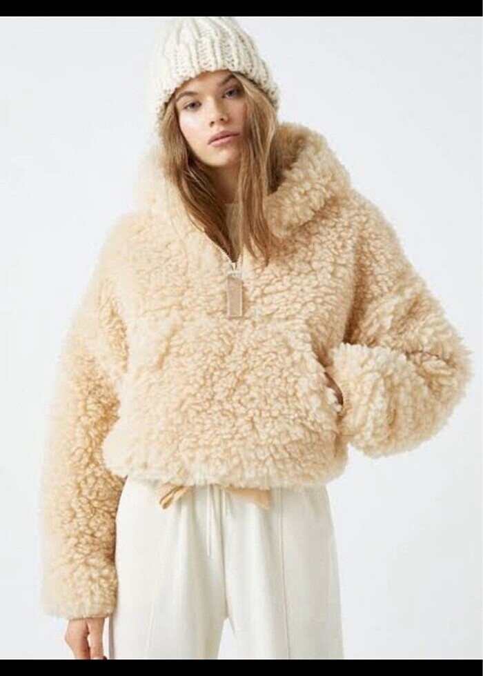 Pull and bear peluş krem rengi peluş kanguru mont 2-3 kere giyildi çok güzel