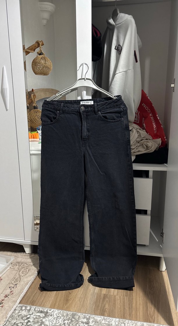 PULL AND BEAR siyah basic wide leg jean
