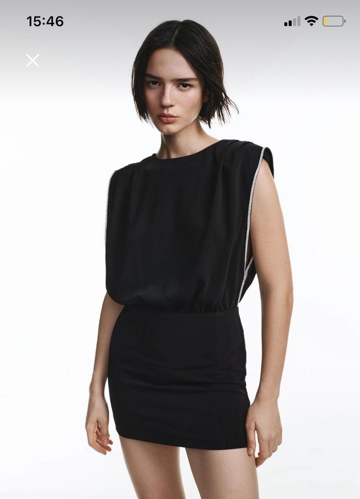 Pull and bear Siyah Mini Drapeli Elbise
