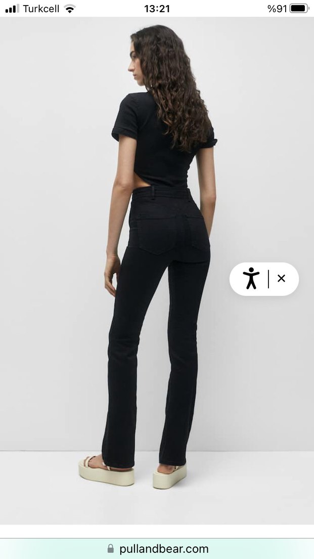 Siyah renk regular fit kadın kot pantolon, midi boyda, günlük ve rahat sokak stili için uygundur. Pull and bear markası m beden etiketi üzerinde orjinal ürün