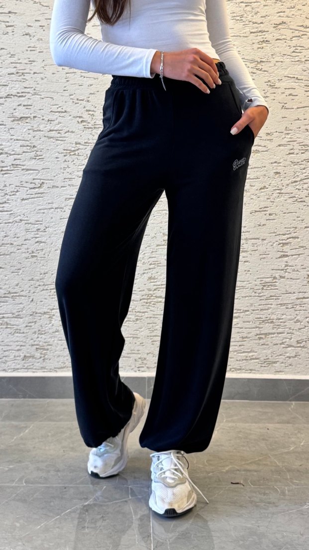 Kadınlar için siyah, eşofman altı. Yan cepler ve rahat bel bandı ile spor ve günlük kullanıma uygun.