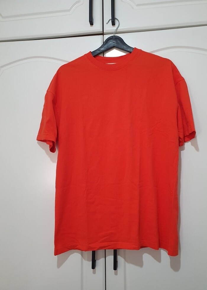 Fotoda canlı kırmızı gibi duruyor ama kiremit rengi. En 51 boy 68 hiç giymedim