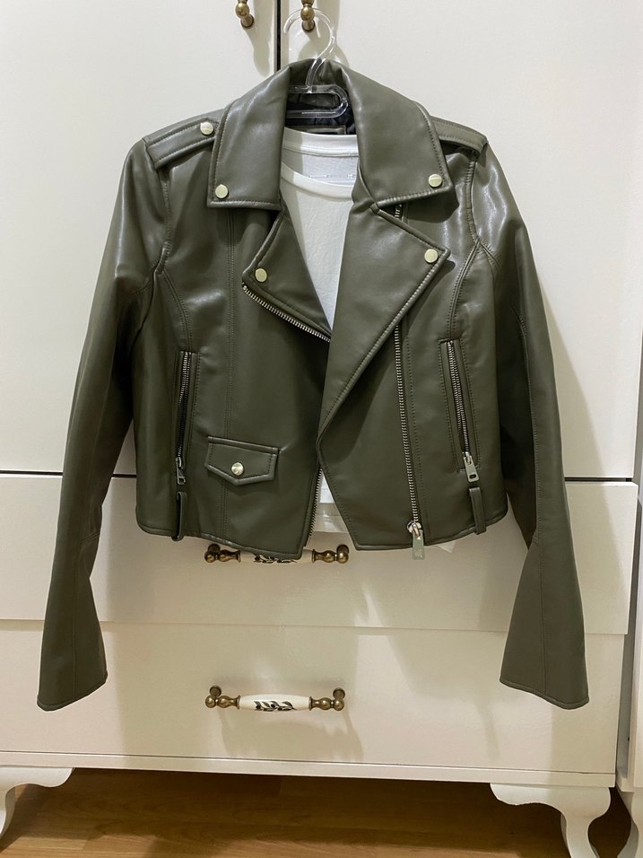 M beden deri biker ceket fakat dar bir kesime sahip olduğundan S-M uyumludur. Bir kez kullanılmış olup hiçbir deformasyonu bulunmamaktadır. Yeni gibidir.