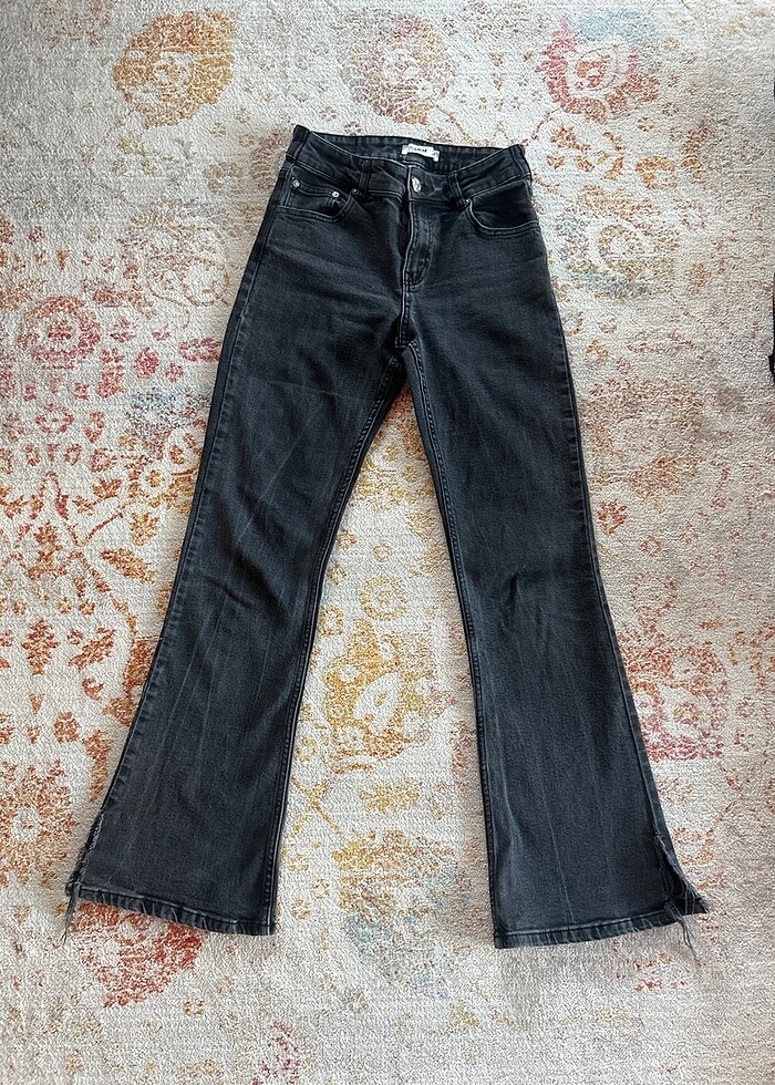 Pull and Bear Yırtmaç Detaylı soluk efektli siyah ispanyol kot