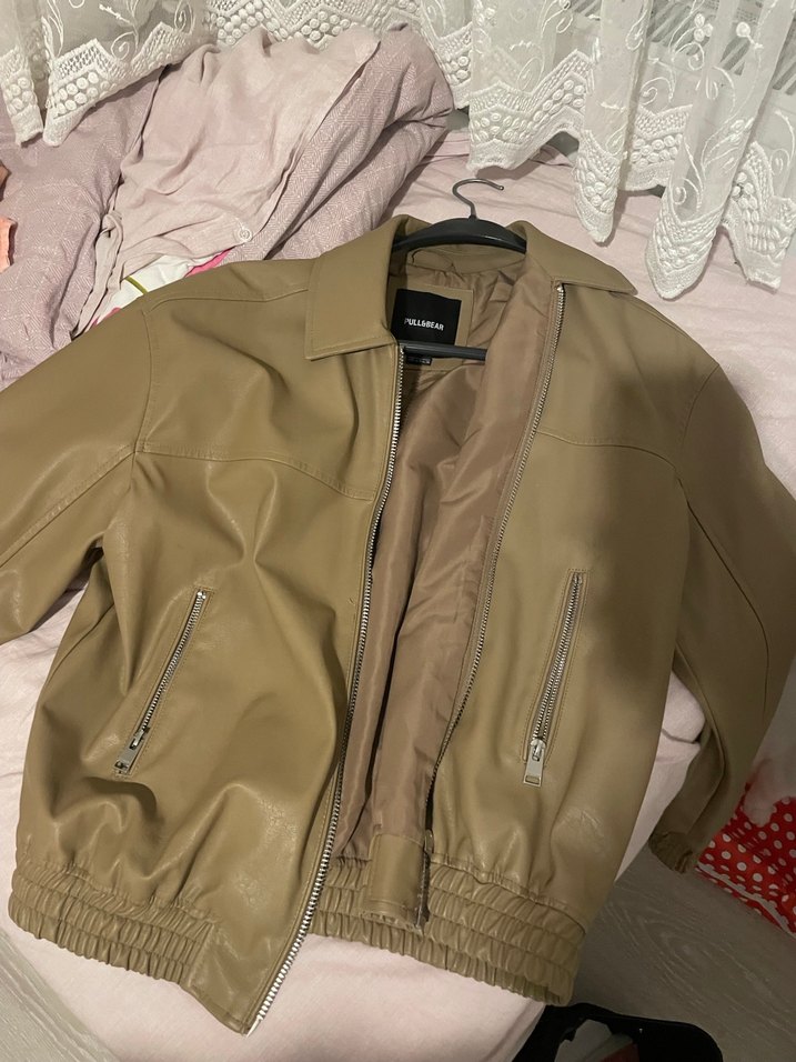 Pull and bearAçık kahve deri ceket