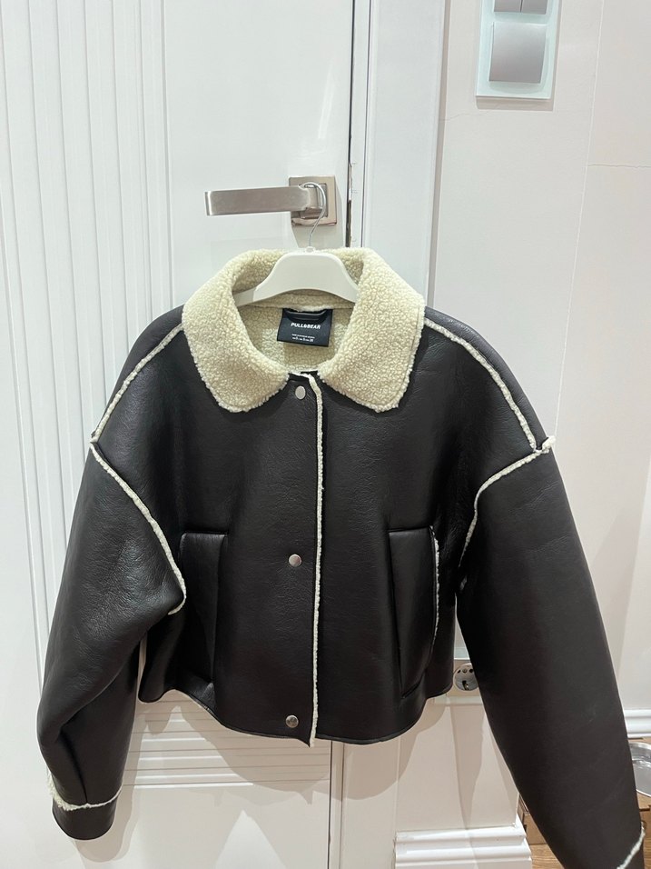 Pull&Bear Acı Kahve Kürklü Deri Kadın Ceket