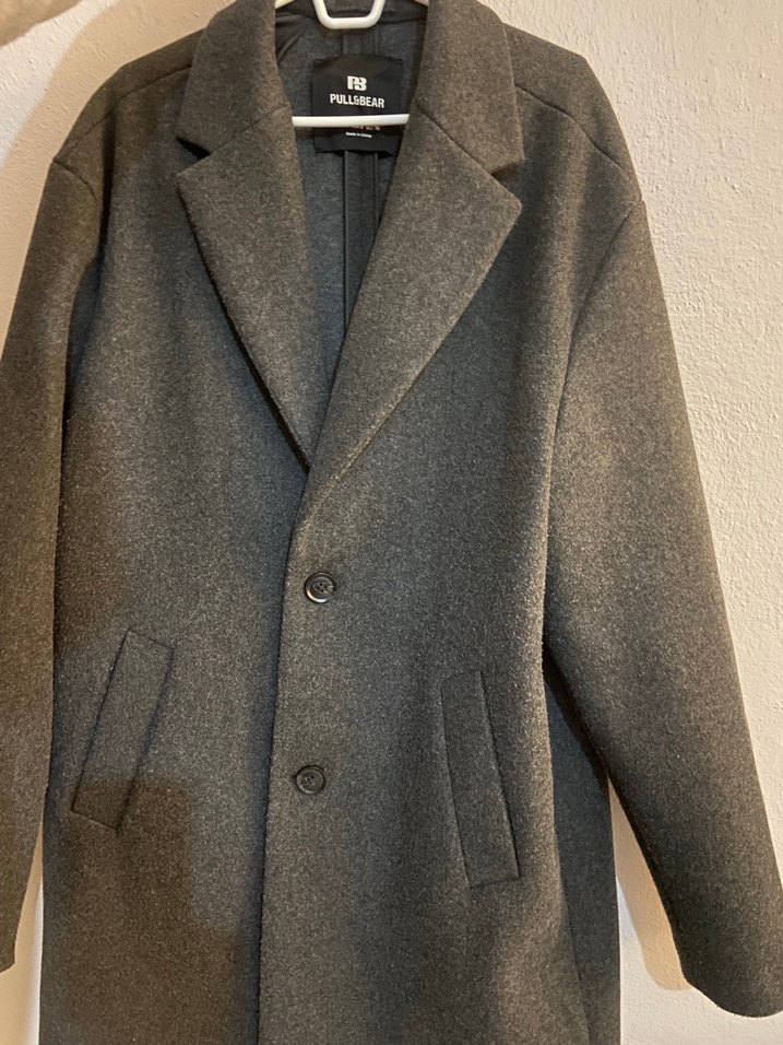 Pull&Bear antrasit gri kaban, klasik yakalı ve düğmeli tasarıma sahiptir. Yumuşak ve sıcak dokusu ile iki cep bulunur. Soğuk günler için uygundur.