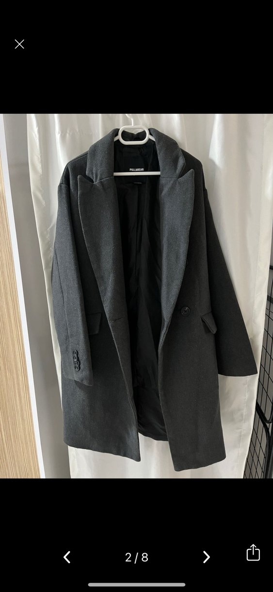 Pull bear antrasit oversize Uzun Kışlık Kaban