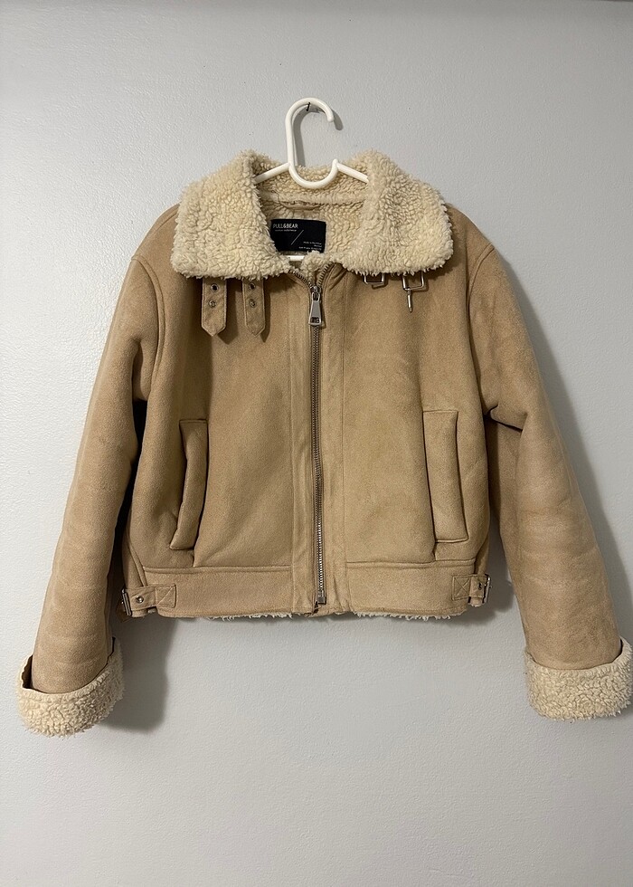 İçi tamamen yumuşacık kürklü (sherpa) astarlıdır, kışın ve soğuk havalarda inanılmaz sıcak tutar. M bedendir. Herhangi bir deformesi yoktur. Az kullanıldı bej renktedir