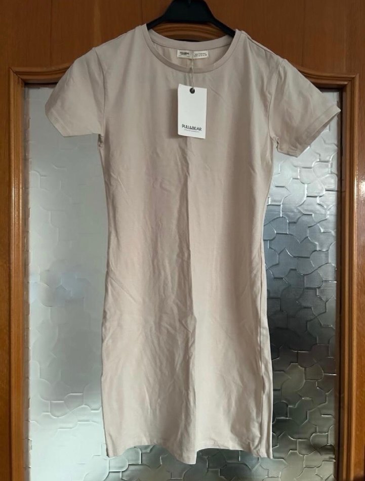 Pull & Bear Bej Kısa Kollu Elbise