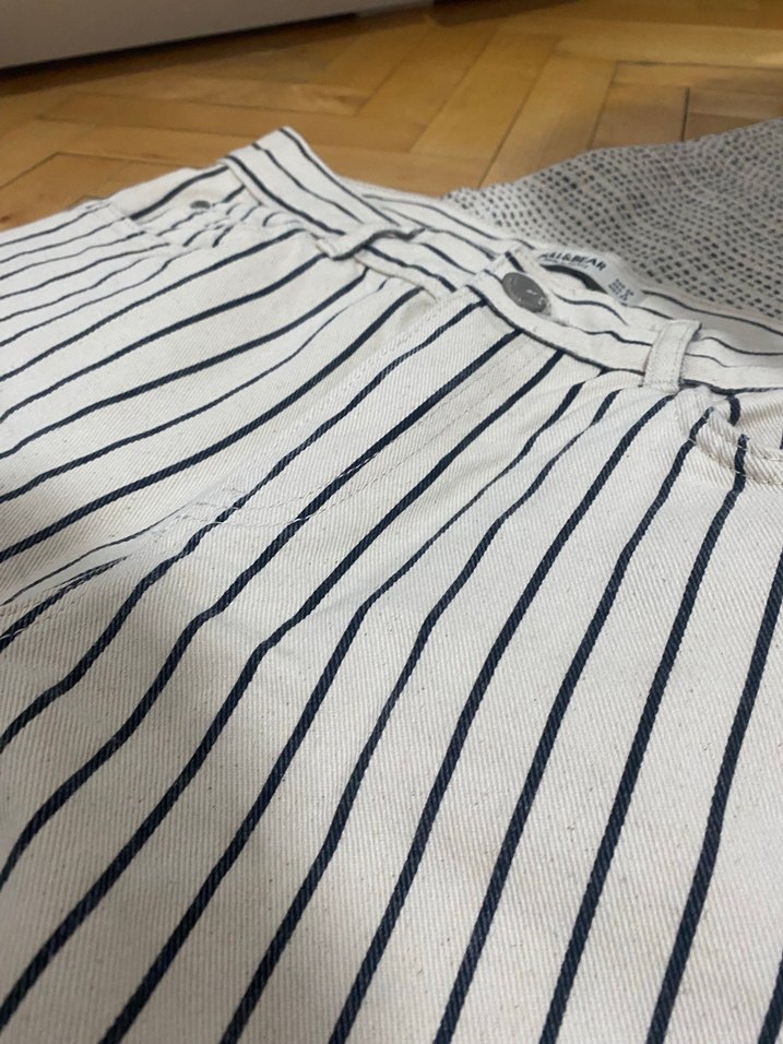Yumuşak pamuktan, dikey çizgili ve pilili detaylara sahip, bedeni olmadığı için satıyorum. Yalnızca bir kez giyindim.