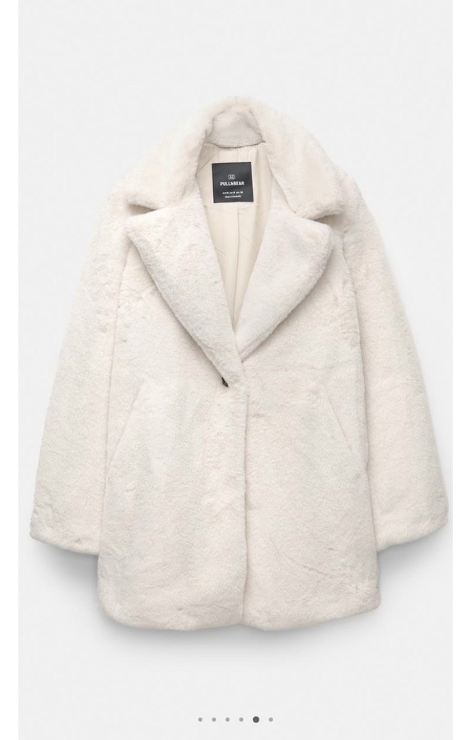 Pull &Bear Beyaz Midi Peluş Kadın Kaban