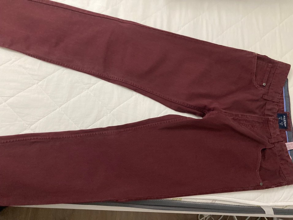 Bordo renkli,kanvays az giyilmiş pantolon.
