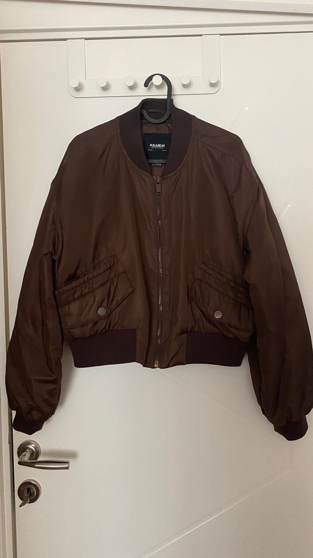 Kahverengi süet malzemeden yapılmış, düğmeli cepleri ve fermuarlı ön kısmı olan, uzun kollu, rahat kesim midi uzunluğunda kadın ceket. Minimalist tarzda, günlük kullanıma uygun. Tek kolunda dikişi var tek sorunu o ama hiç belli olmuyor.