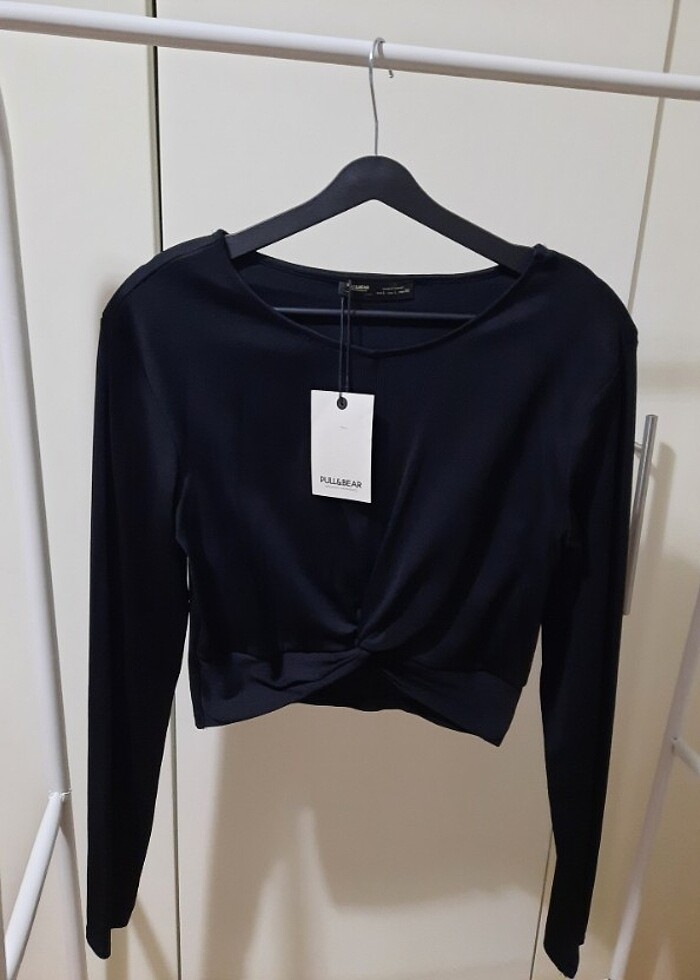 Pull & Bear siyah crop ön kısmı büzgülü detaylıdır L beden etiketlidir